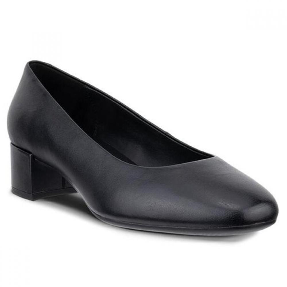 The Ecco Riva 35 250603-01001 is a classic pump made from premium ECCO leather, with leather lining that comfortably wraps around the foot all day long, providing a soft wearing experience. The padded removable leather inlay sole boasts a soft and luxurious feel, while the 35mm high block heel completes a chic style. The flexible rubber outsole offers excellent durability and traction.
