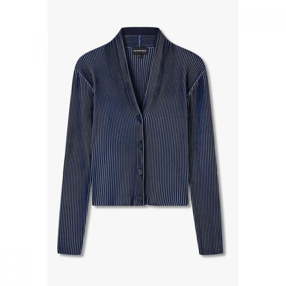 The 25 F/W Women’s Stripe Rib Crop Cardigan A525328528 is made from a polyester blend, offering comfort and style. Featuring an embossed rib panel design and unique stripe points, the button closure detail allows for versatile styling options, teaming well with an inner layer, bootcut pants, or skirts for a trendy look.
