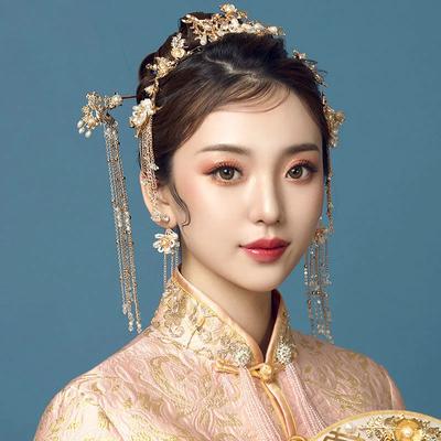 Chinese Wedding Dress Headwear Hanfu Ancient Headdress Xiuhe Style Ethnic Golden Tassel Hair Accessories Jewelry