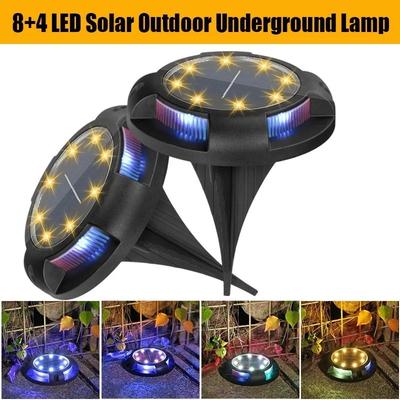 1-4Pcs Solar Power Disk Light Outdoor Garden Solar Underground Light Deck Light Spotlight Buried Solar 8LED Lamp Garden Decor