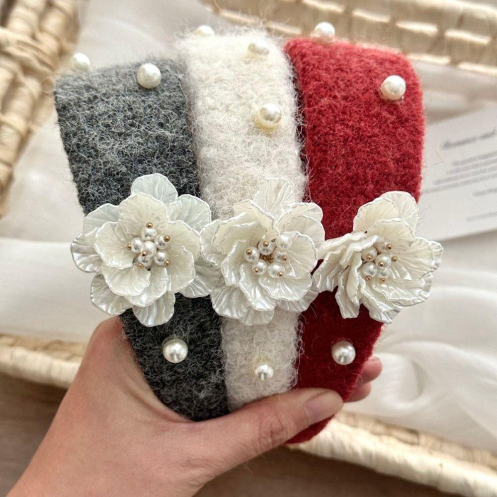 Sweet Floral Pearl Hair Hoop Exquisite Wide Edge Hairband Flocking Flower Headband Wash Face
