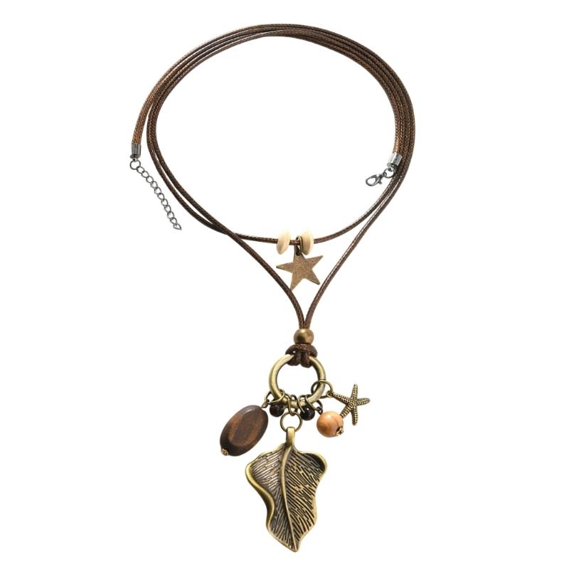 Artisanal Crafted Beaded Leaf Necklace Soft Wax Cord Multi Material Layering Design Versatile Jewelry Gift