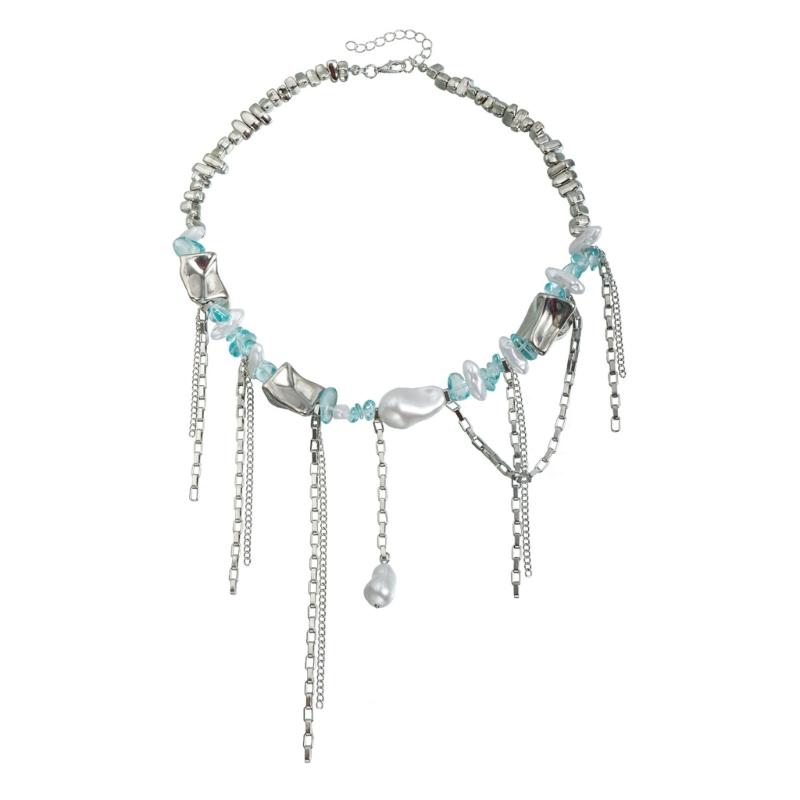 Artistic Short Clavicle Necklace Featuring Geometric Plastic Beads And Movable Tassels Decoration Fashion Neckwear