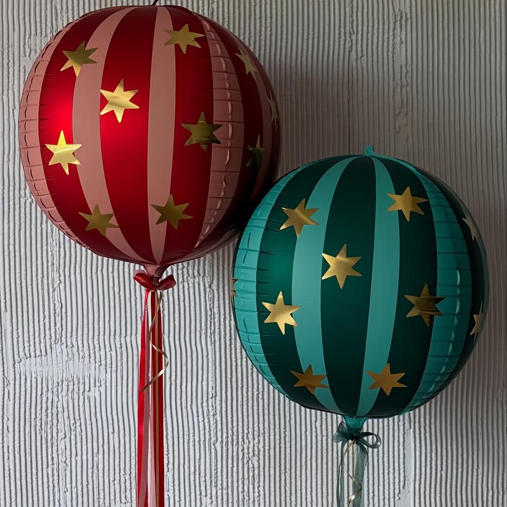 2pcs 22 Inch 4D Striped Star Aluminum Film Balloon with Red Green Spheres That Can Float In The Air for Christmas and Birthday