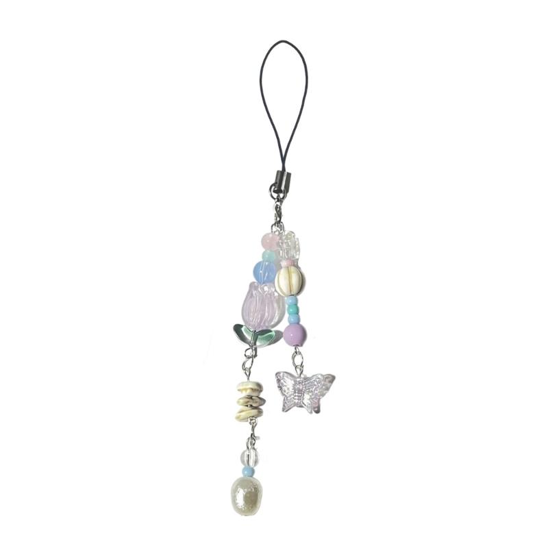 Unique Butterfly Phone Charm Fashionable Decorative Bead Keychain Lanyard Bag Pendant Accessory for Women Girls