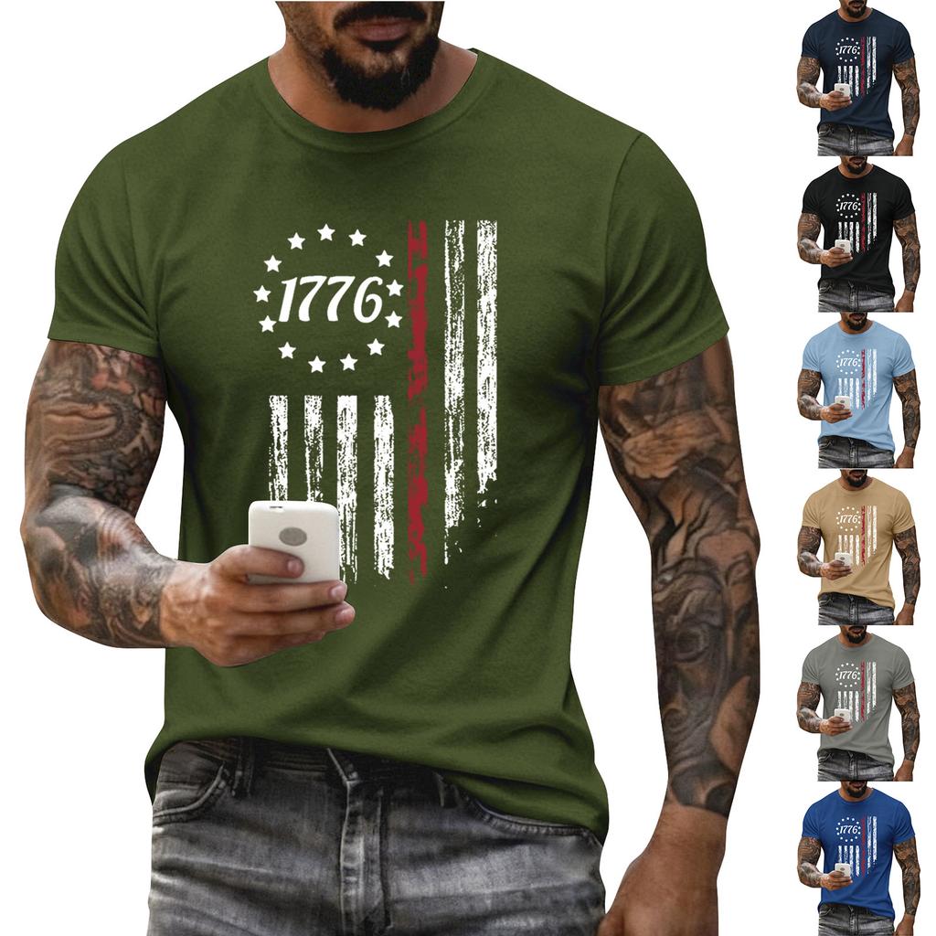Men's Holiday Print Round Neck Short Sleeve Top Casual Sports Top