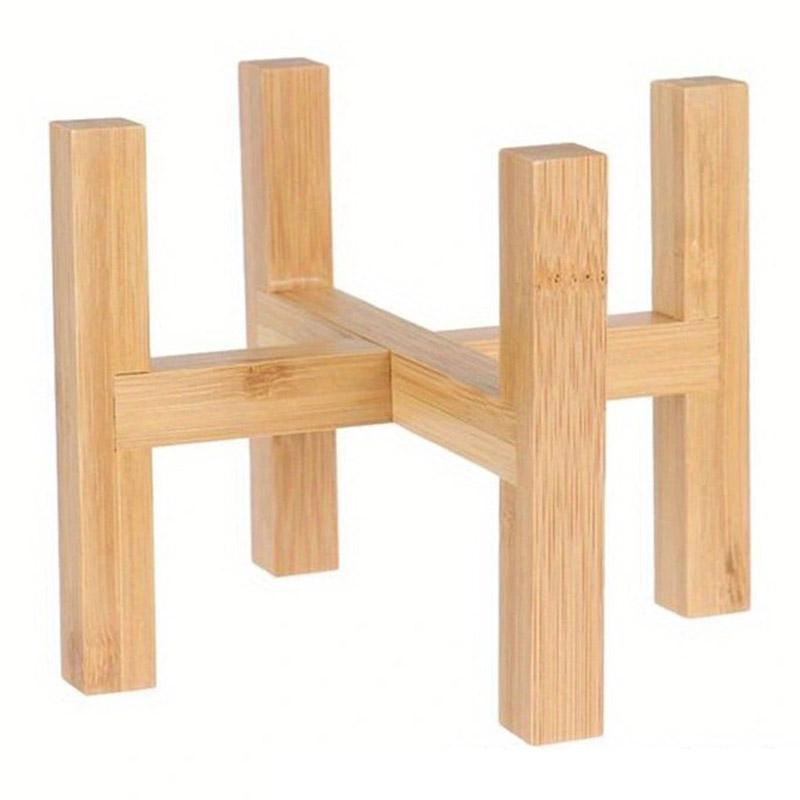 JJTZ Bamboo Floor Four Legged Flower Stand Cross-shaped Storage Shelf Planters Pots Display Rack, Size M
