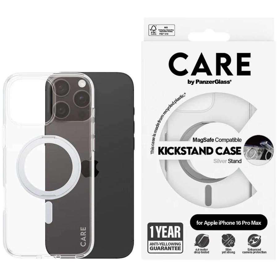 PANZERGLASS Feature Case Transparent W. Silver Kickstand & MagSafe iPhone 16 Pro Max