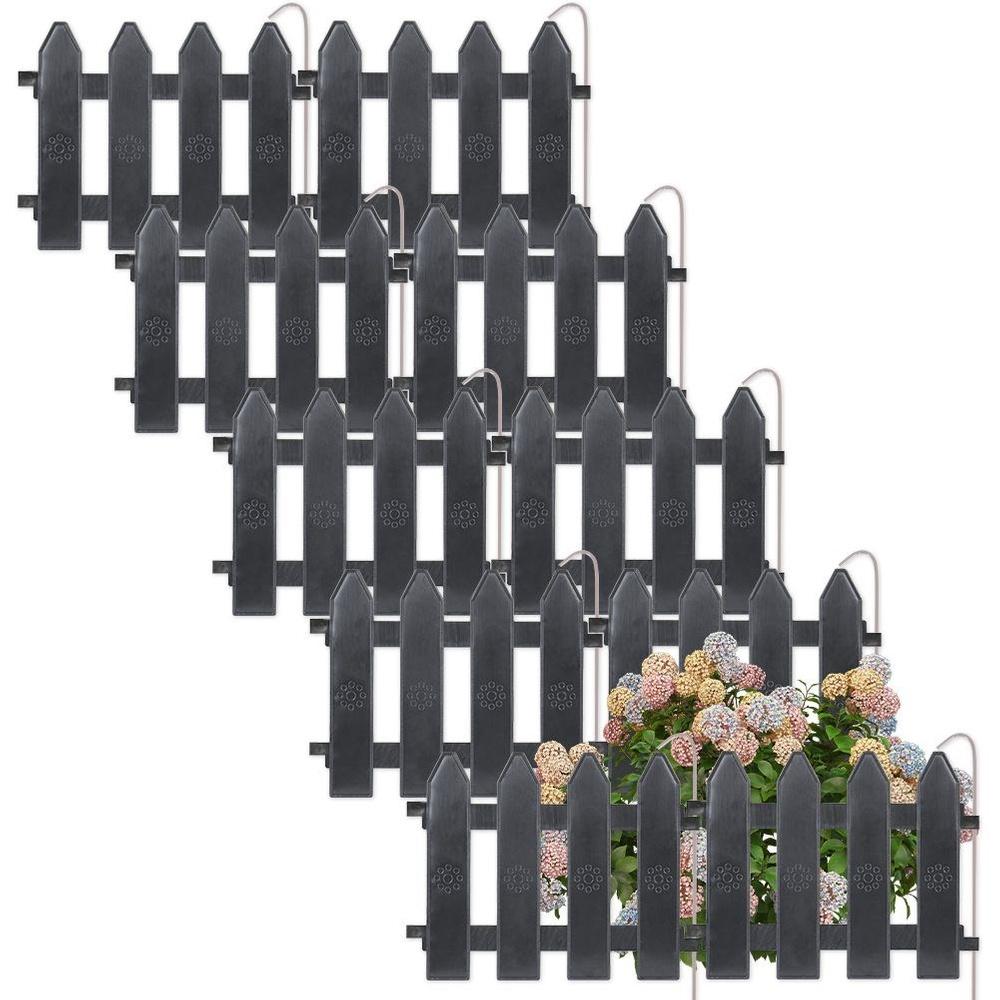 10x Plastic Garden Fence Gray Border Palisade Edging Lawn 2m
