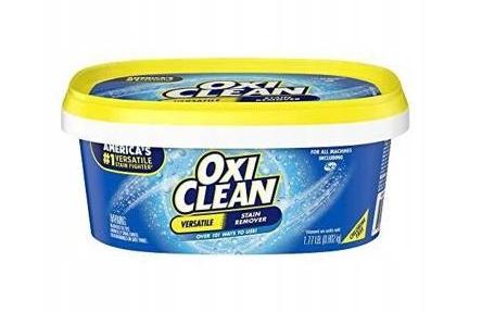 ⭐️⭐️⭐️⭐️⭐️✅ SPECYFIKACJA:odplamiacz w proszkupojemność: 0,802 kg (około 38 prań)marka: Oxi CleanSkład: Sodium carbonate, sodium carbonate peroxide, C12-15 alcohols ethoxylated, sodium chloride, colorants, fragrances Contains no phosphates.Produkt bezpieczny dla wszystkich kolorów.Nie zawiera chloru i fosforanów.Działa najlepiej w ciepłej lub gorącej wodzie. Niektóre zabrudzenia mogą wymagać kilkukrotnego powtórzenia zabiegu. Nie zaleca się dodawać większej ilości proszku, grozi to utratą koloru.Uwaga! Zawsze przetestuj produkt na mało widocznym miejscu. Nie wolno stosować do wełny, mieszanek wełny, jedwabiu, mieszanek jedwabiu ani skórzanych tkanin czyszczonych chemicznie. Nie stosować do biżuterii, farb lateksowych, plecionych koszy, niemalowanej wikliny, juty, drewna gotowego ani tekowego, metalu, rdzy, wyschniętej farby. Nie używać jako wybielacz do szamb.PRZECHOWYWAĆ W MIEJSCU NIEWIDOCZNYM DLA DZIECI. PRODUKT SZKODLIWY DLA OCZU I W WYNIKU POŁKNIĘCIA! UŻYWAĆ TYLKO W RĘKAWICZKACH!W wypadku kontaktu produktu z oczami, należy je płukać przez 15 minut i natychmiast powiadomić o tym lekarza. W przypadku połknięcia należy wypić szklankę wody, nie wywoływać wymiotów, natychmiast powiadomić lekarza.Prosty w użyciu: należy wsypać 1 miarkę produktu do prania. W przypadku prania w pralce należy dodać detergent. Nie mieszać z produktem zawierającym amoniak, wybielacz chlorowy ani z innymi chemikaliami.Nie tworzyć roztworu z wodą w zamkniętym pojemniku, ponieważ ciśnienie może spowodować pęknięcie opakowania, powodując obrażenia.