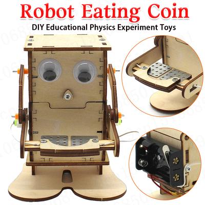 Wooden Robot Eating Coin DIY Educational Physics Experiment Toys DIY Robot Eating Coin Model Assemble Kit Teaching Learning Toys