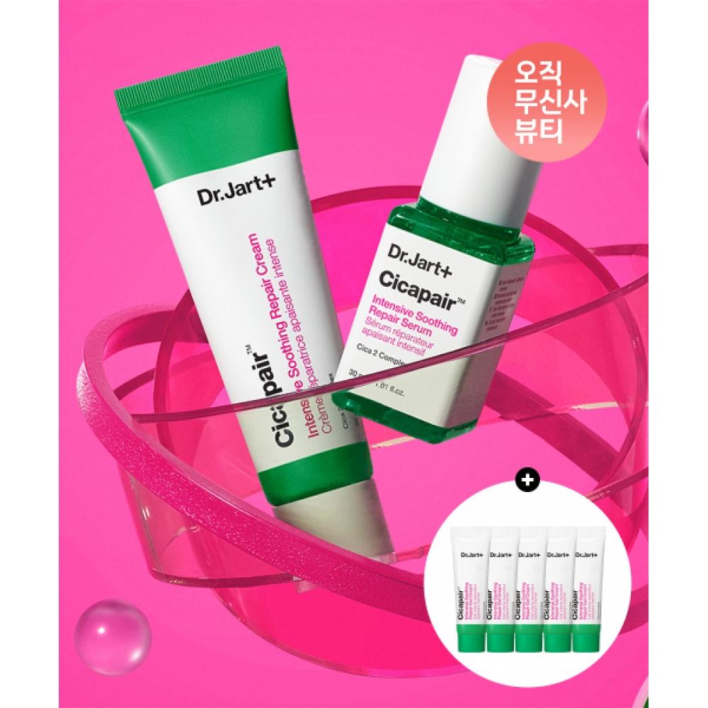 DR.JART Cicapair Set (Cream + Serum) + Cicapair Intensive Repair Gel Cream 7ml x 5 is the perfect solution for sensitive skin. This set consists of cream and serum designed to strengthen the skin barrier and provide calming effects. It is especially effective for skin irritated by external environments and is suitable for all skin types.