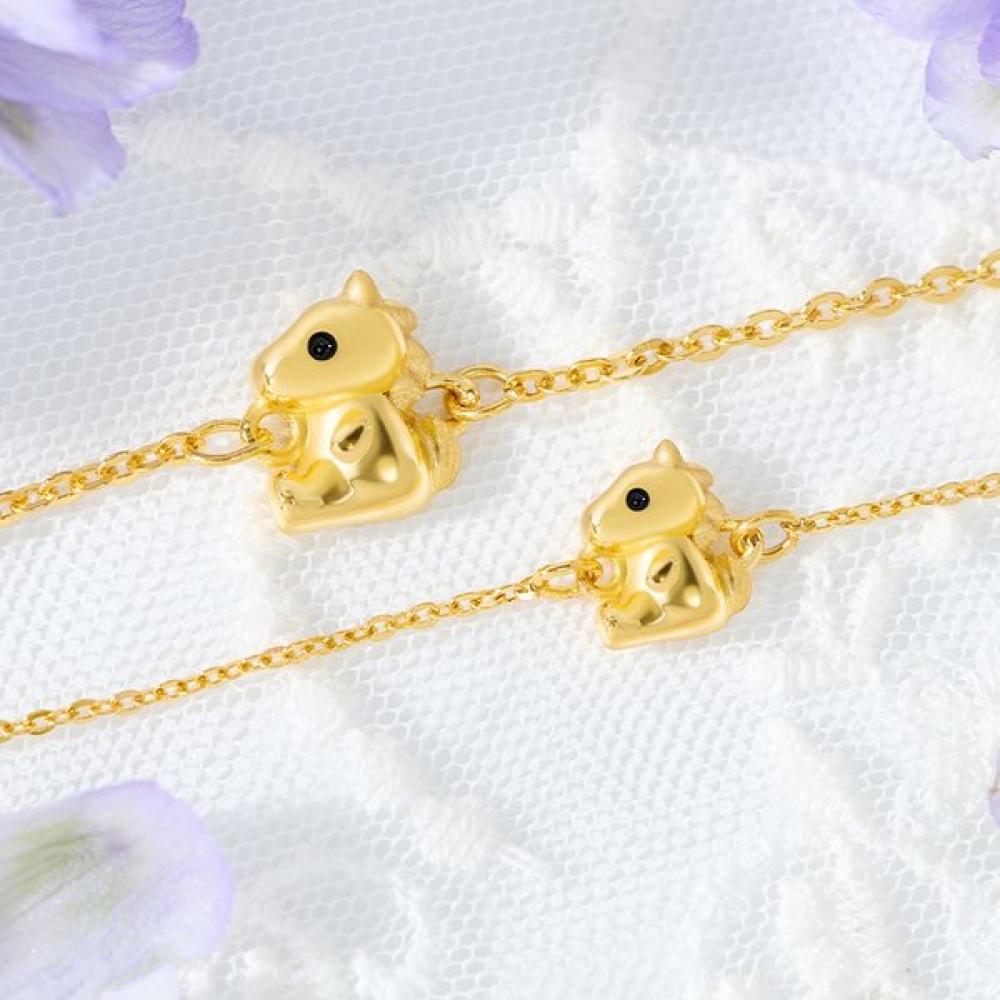The 24K pure gold 1.875g horse-themed red chain bracelet is a baby product boasting a special design and excellent quality. This bracelet is made with environmentally friendly packaging and strict quality control for a healthy planet.