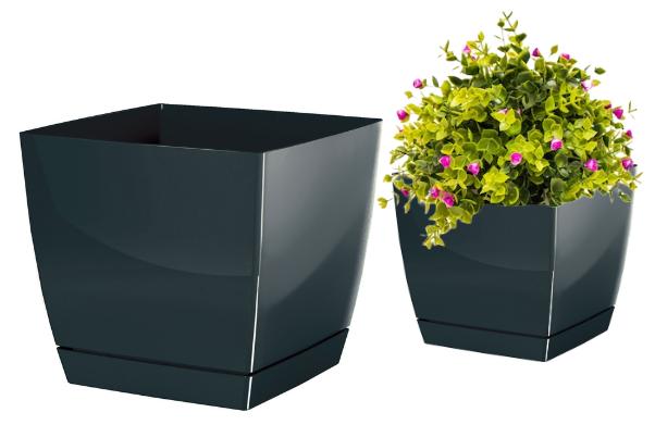 Coubi Square Flowerpot with Saucer, Graphite, 12x11cm