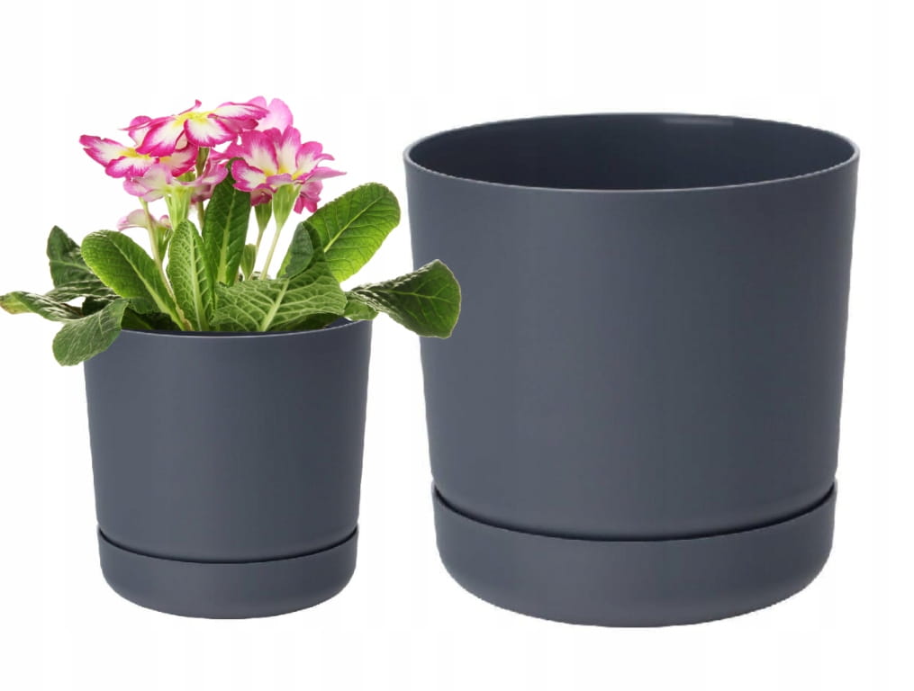 Plastic Flowerpot with Saucer 13x146cm Anthracite Matt