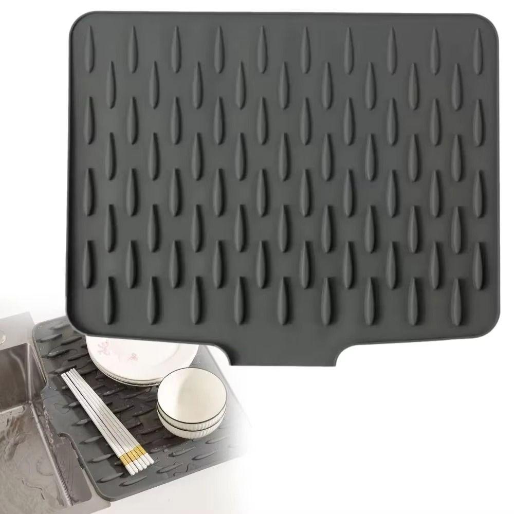 Non-Slip Silicone Sink Mat Built-in Drain Design Dish Drying Tray Coffee Station