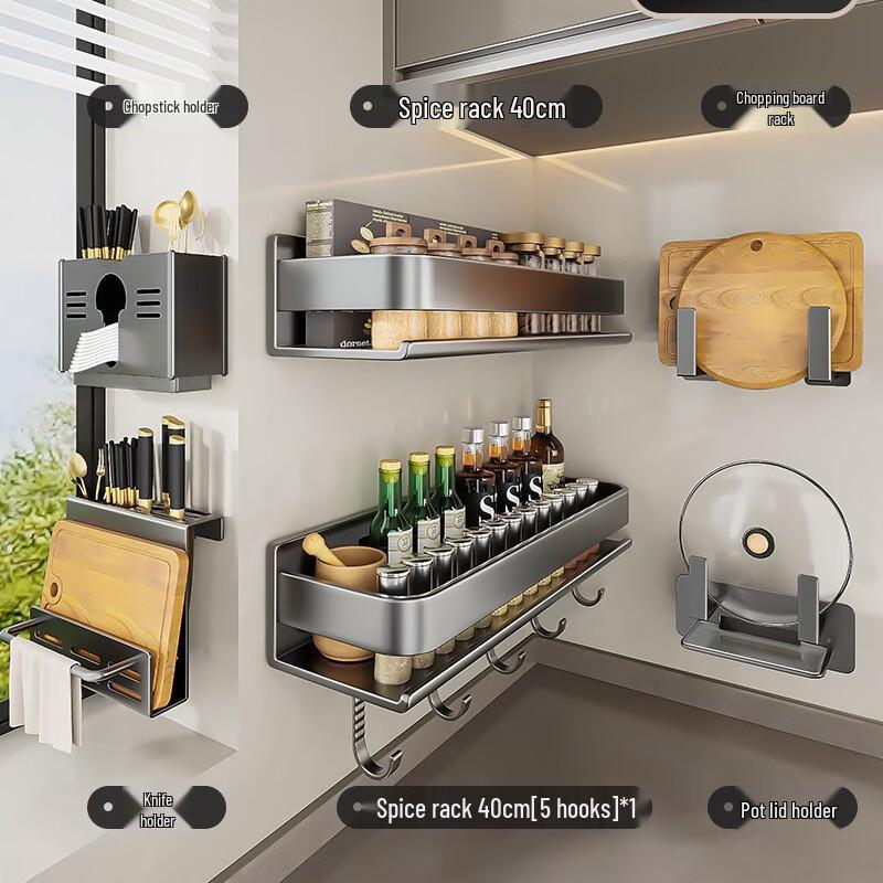 No-Drill Wall-Mounted Kitchen Storage & Seasoning Rack