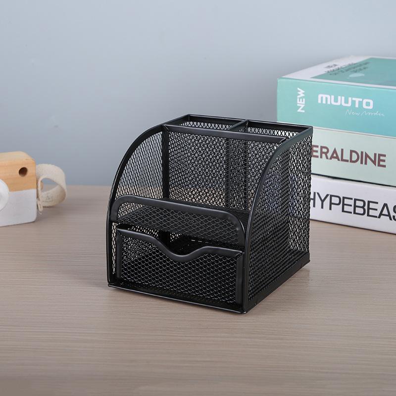 Metal Storage Pen Holder, Office Cultural Stationery Box, Ironwork Tabletop, Student Stationery, Iron Mesh Metal