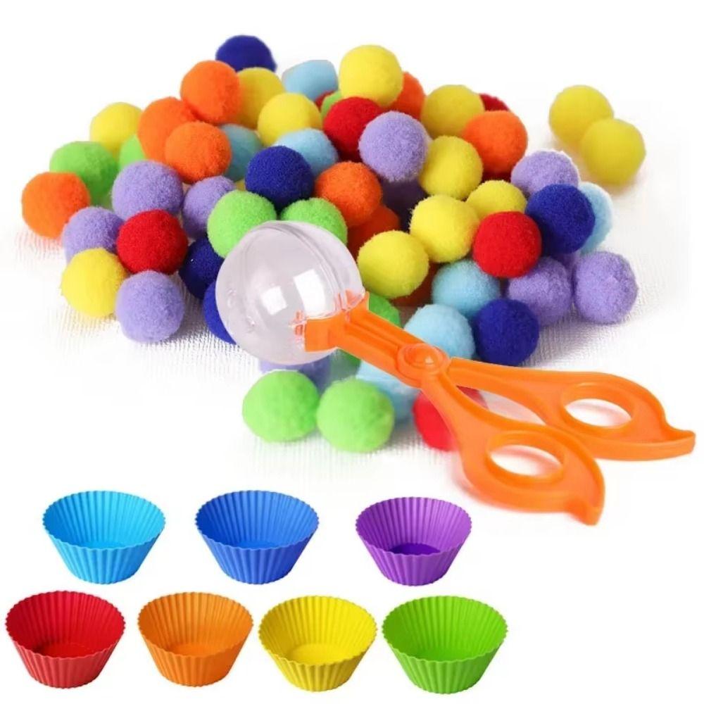 Colorful Early Education Toy Rainbow Counting Pompoms Pompoms Tweezers Toy Preschool Activities