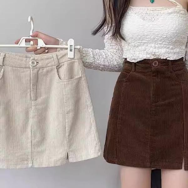 Women's Corduroy High-Waist A-line Skirt, Petite, Coffee, Plus Size, Hip-Hugging, Autumn/Winter 2026.