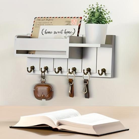 Multifunctional Wall-Mounted Storage: Equipped with multiple sturdy hooks for keys and pendants, this rack also includes an open shelf perfect for displaying potted plants or storing small sundries. This versatile design maximizes organization while enhancing the aesthetic appeal of your wall space.