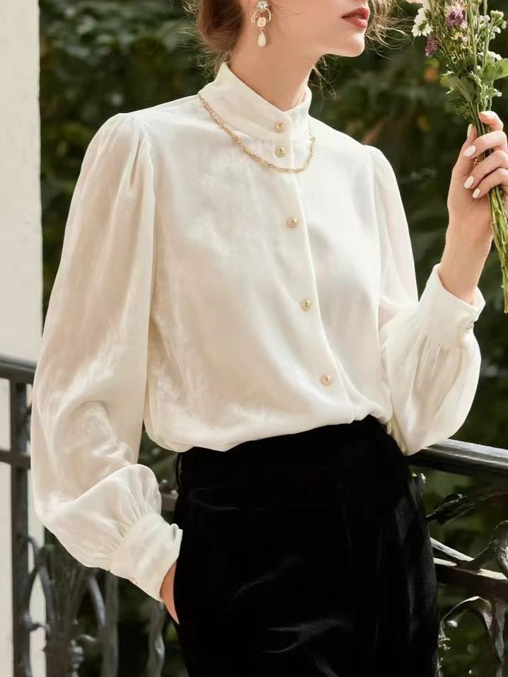 Women's Velvet Stand-Up Collar Shirt - 2025 Autumn/Winter Collection, High-End Long-Sleeved Top.