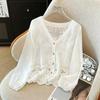 French Lace Crochet Patchwork Chiffon Cardigan - Long Sleeve Retro Design