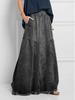 Introducing a chic addition to your autumn and winter wardrobe, this high-waist A-line denim skirt combines a color block pattern with a sportive style for a modern twist on a classic piece. Crafted from soft, high-quality cotton, it ensures both comfort and durability. The elastic waistband provides a snug fit while maintaining ease of movement, making it a versatile choice for casual outings or stylish get-togethers. Elevate your seasonal fashion with this uniquely designed skirt that seamlessly blends comfort with contemporary flair.