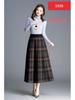 High-Waist Plaid Knit Flare Midi Skirt - Thick Pleated A-line for Autumn/Winter