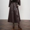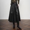 Women's Elegant Lambskin High Waist Pleated A-line Skirt, Mid-length Korean Style
