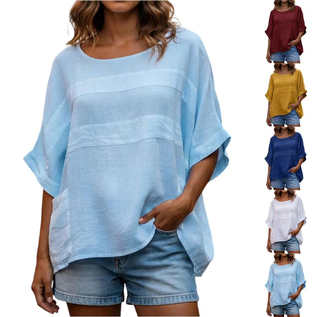 Women's Round Neck Three-point Sleeve Casual Loose Top