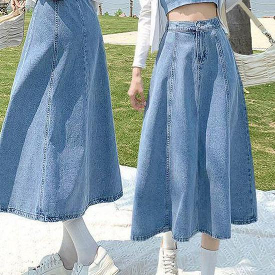 Plus Size Women's Retro High-Waisted Denim A-Line Skirt - Summer/Autumn Trendy