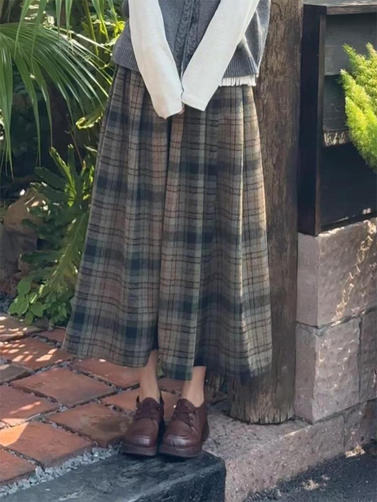Elevate your autumn and winter wardrobe with this stylish high-waist A-line plaid skirt. Crafted from premium polyester, it offers both warmth and comfort, perfect for cooler seasons. The elegant skirt features intricate embroidery, adding a touch of sophistication to its classic design. Ideal for pairing with your favorite sweaters or blouses, this skirt is a versatile addition to any fashion-forward collection.
