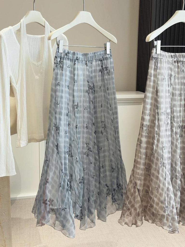 Women's Summer High Waist Irregular Hem Plaid Chiffon Skirt