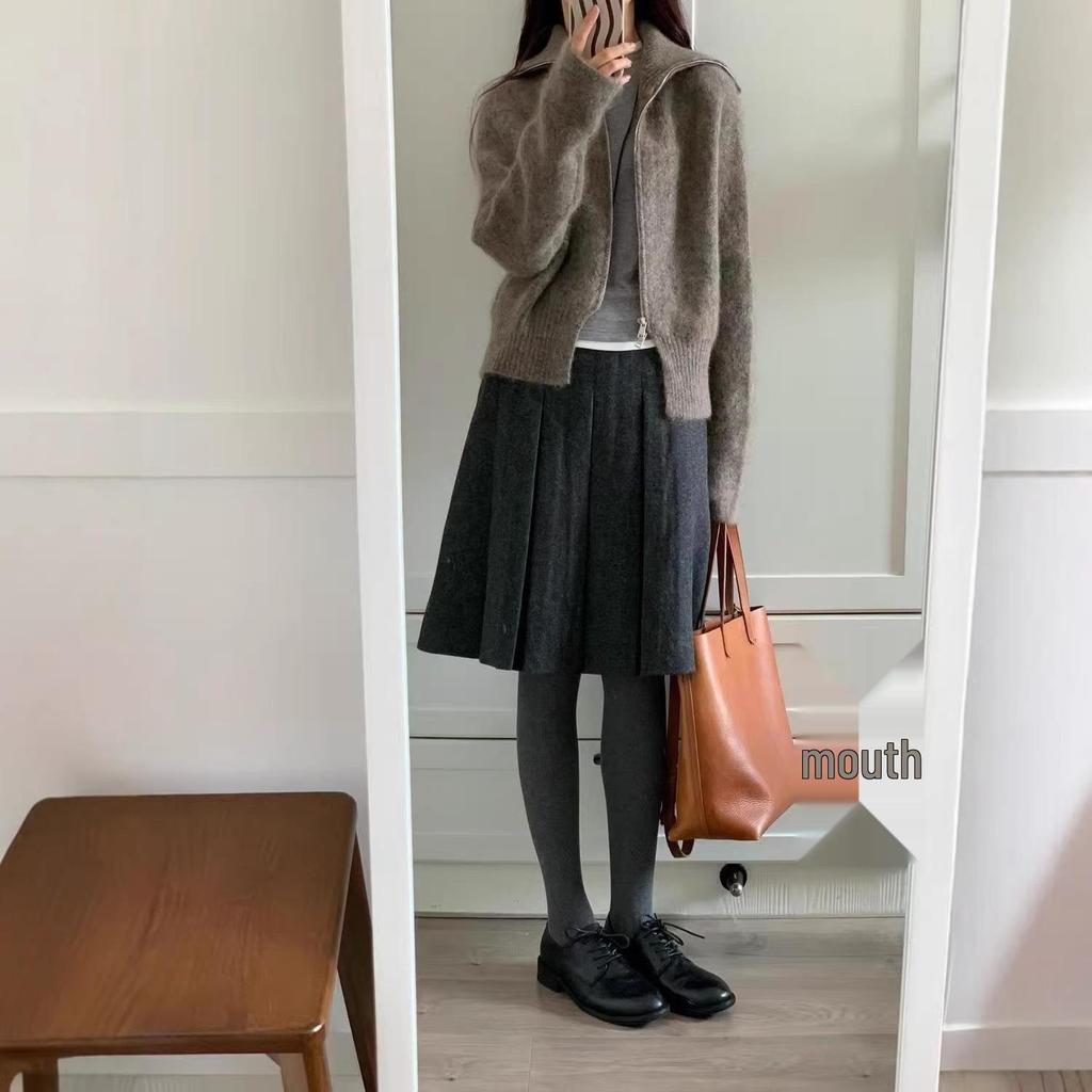 Petite 2026 Autumn/Winter Wool Pleated High-Waisted A-Line Skirt, Slimming Mid-Length Women's Fashion