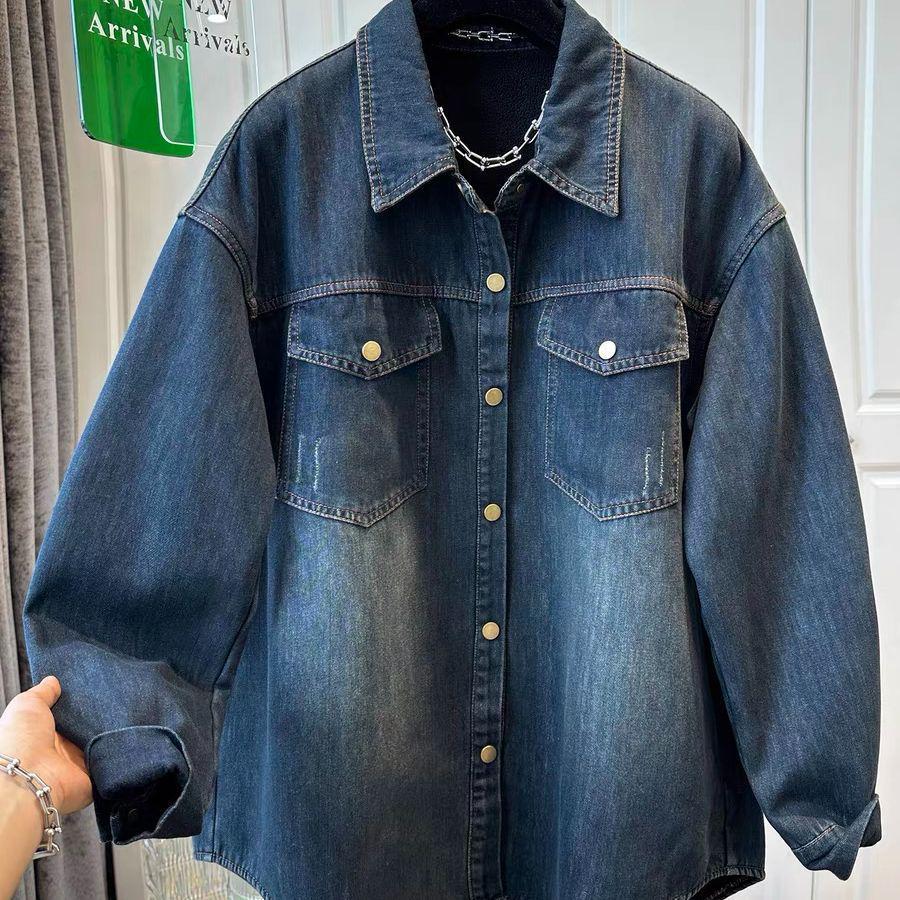 Velvet 2025 Retro Denim Shirt: Casual, Loose-Fit, Thickened Jacket for Spring & Autumn