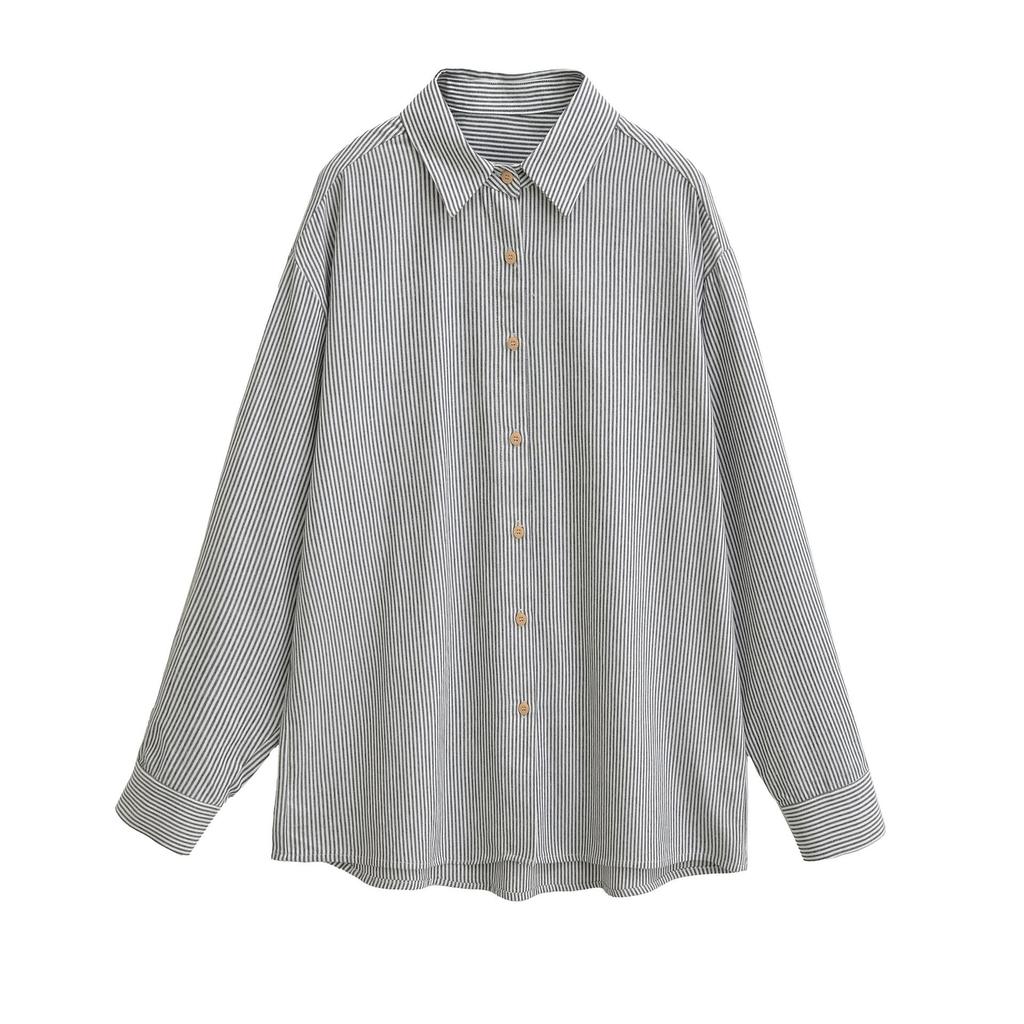 Women's Retro Striped Long Sleeve Lapel Shirt - Casual, Loose Fit for Spring and Autumn