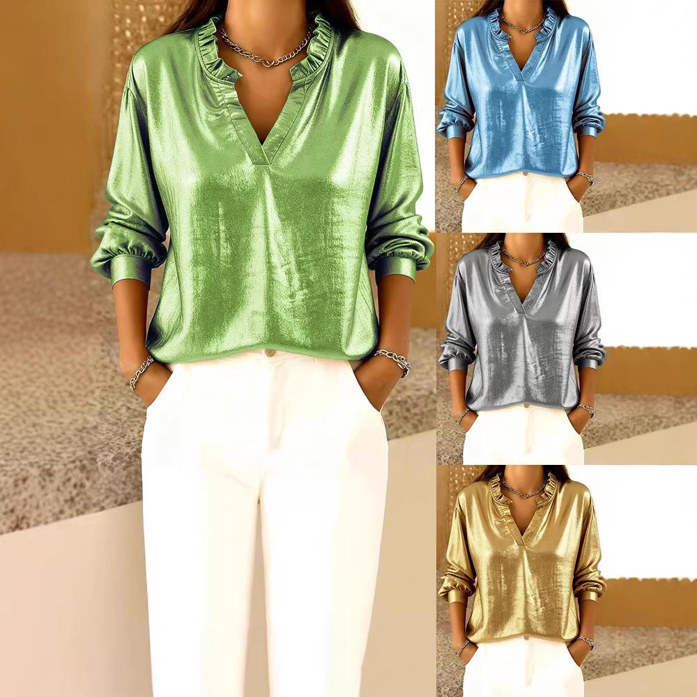 European & American Women's Ruffle Stand Collar Long Sleeve Top
