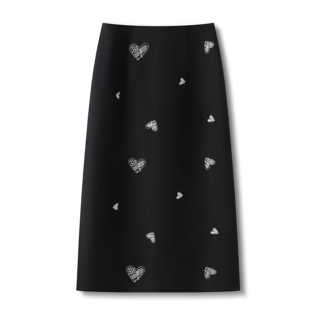 Elegant Heart Print Black Midi Skirt for Women - 2026 Spring/Autumn Trendy Age-Defying Straight Suit Style