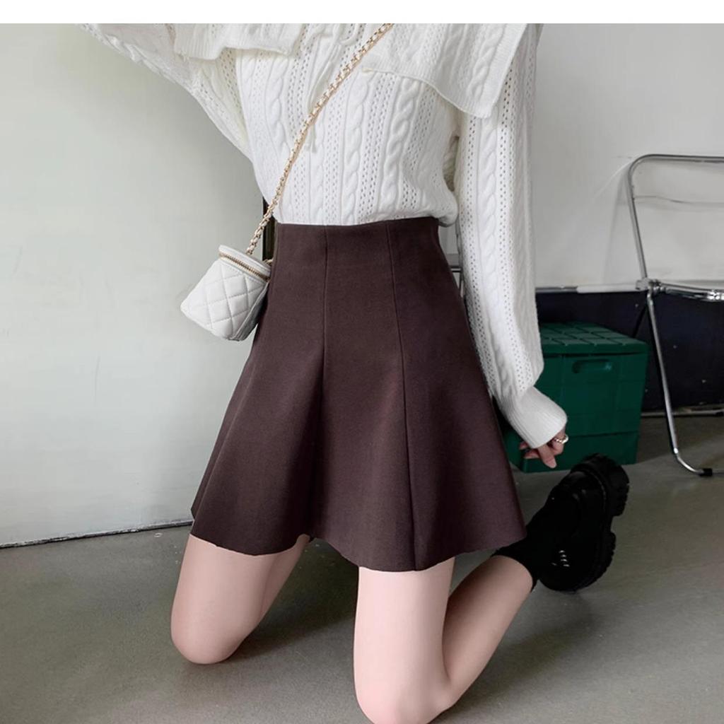 Korean Style High-Waisted Corduroy A-line Skirt - 2025 Slimming Autumn/Winter Petite Umbrella Skirt with Anti-exposure Design