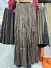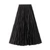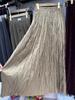 Women's 2026 Spring Textured Pleated Skirt - High Waist, Large Hem, Long Length, Simple Style