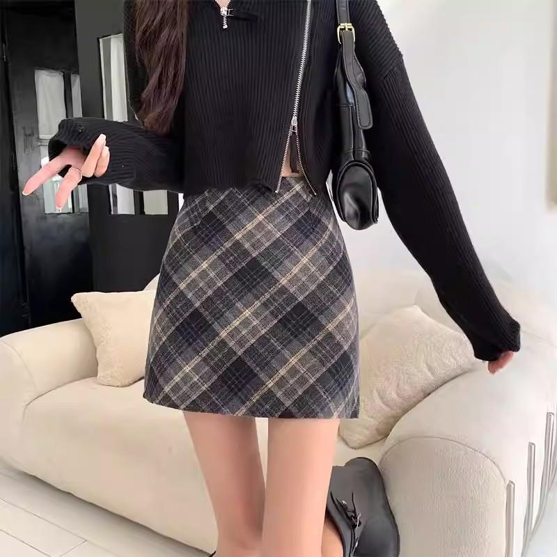Elevate your autumn and winter wardrobe with this chic mini skirt, expertly crafted from high-quality woolen fabric. Designed for the fashion-forward woman, this slim-fit silhouette promises both warmth and style. The timeless plaid pattern adds a touch of classic elegance, making it a versatile piece suitable for various occasions. Perfect for pairing with tights and boots, this high-waisted skirt is a must-have addition to your seasonal collection. Experience comfort and sophistication with this essential fashion staple.