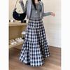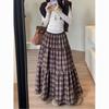 2025 Women's Retro Plaid High-Waisted A-Line Patchwork Slimming Mid-Length Skirt