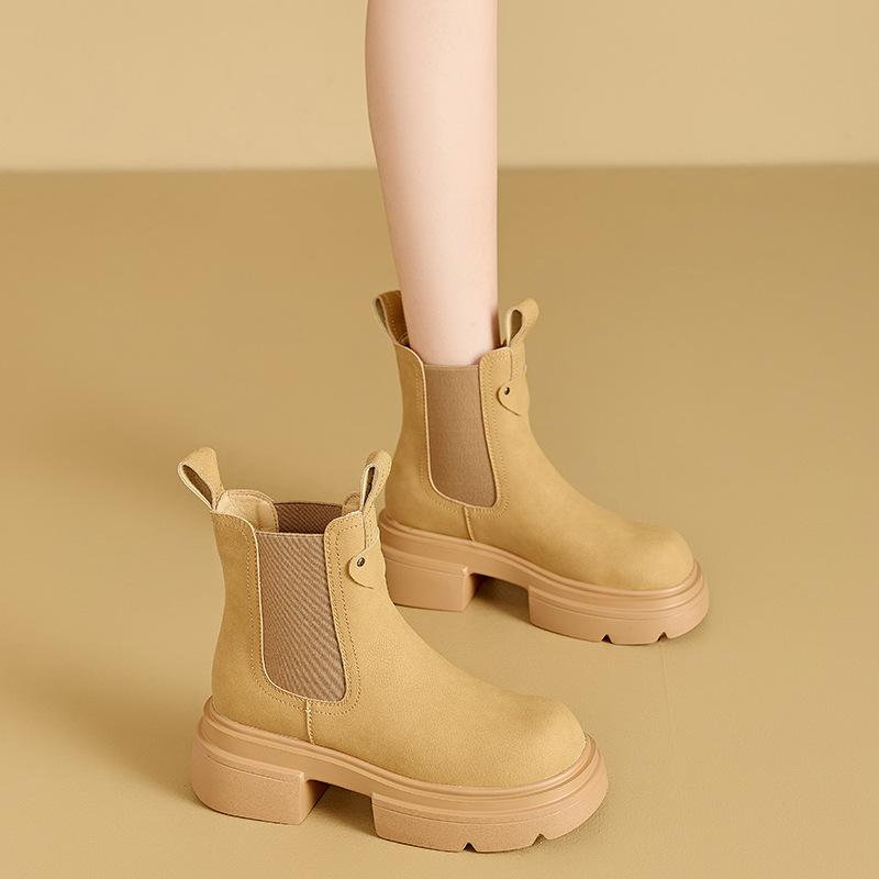2026 Autumn Thick Soled Women's High Rise British Style Thick Soled Short Boots