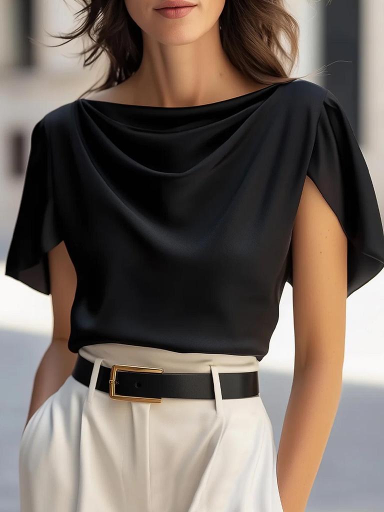 2026 Satin Imitation Silk Drape Swing Collar Short Sleeve Women's Top