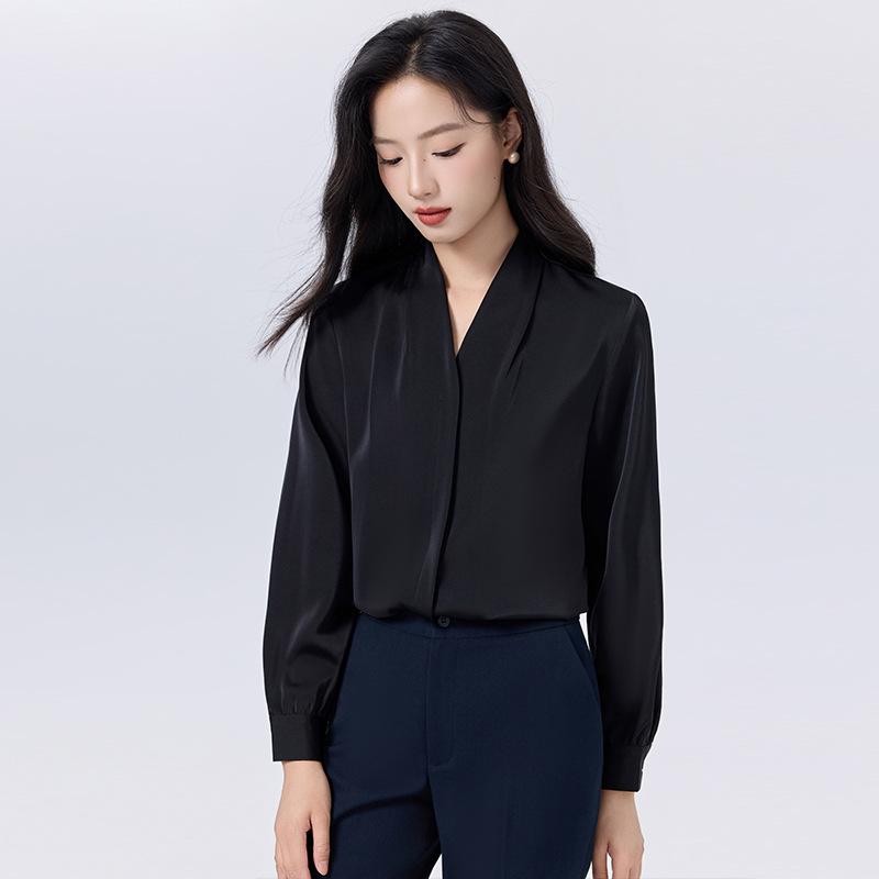 Elevate your professional wardrobe with this elegant women's shirt, specifically designed for petite figures. Crafted from polyester, it provides a comfortable and breathable fit perfect for both spring and autumn. The timeless V-neck design and solid pattern offer a chic and sophisticated look, making it ideal for interviews or any professional setting. With its long sleeves, this shirt combines style and functionality, ensuring you make a confident impression.