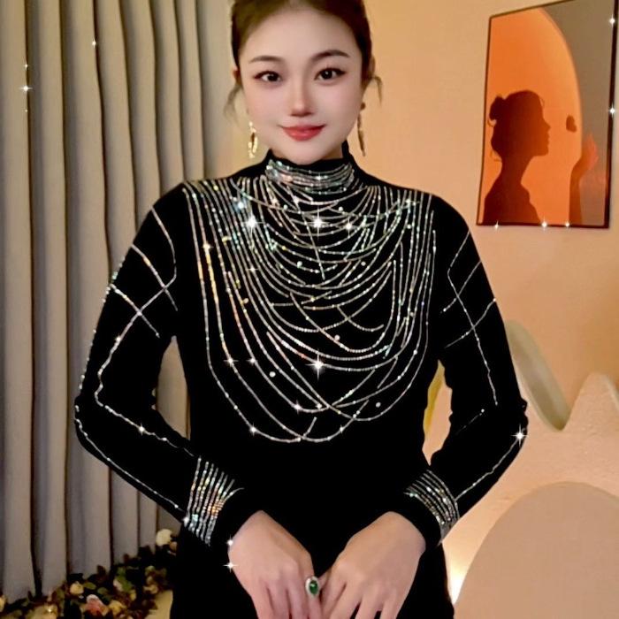 2024 Autumn/Winter Fashionable Rhinestone Warm Top: Age-Defying, Tummy Concealing, Versatile Long-Sleeve Base Layer for Moms