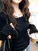 Thermolite Women's Korean Ruffled Long Sleeve Round Neck Slim Fit Base Layer Top (Autumn Trendy)