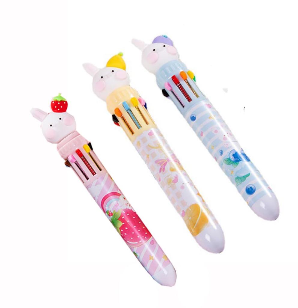 Clapoyis Set of 10 Color Ballpoint Black Fruit Rabbit 3-Piece Pens, 0.5mm, Ink,