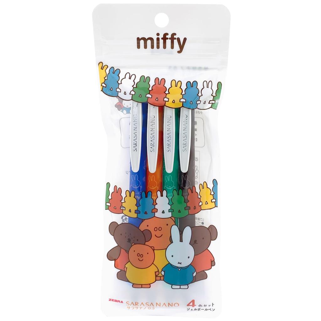 BSS Miffy Gel Ballpoint Sarasa EB327C Pen, Nano, 4-Color Set, 0.3mm, Friends,